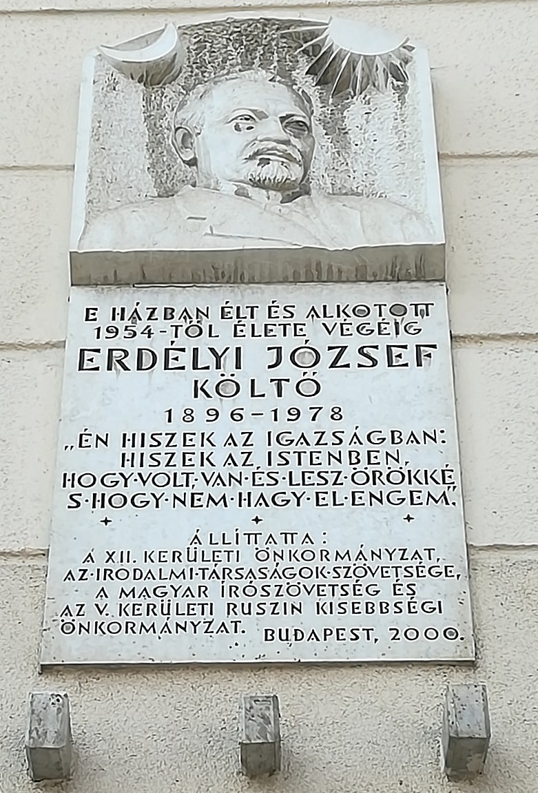 Rajki László: Erdélyi József domborműves emléktáblája |