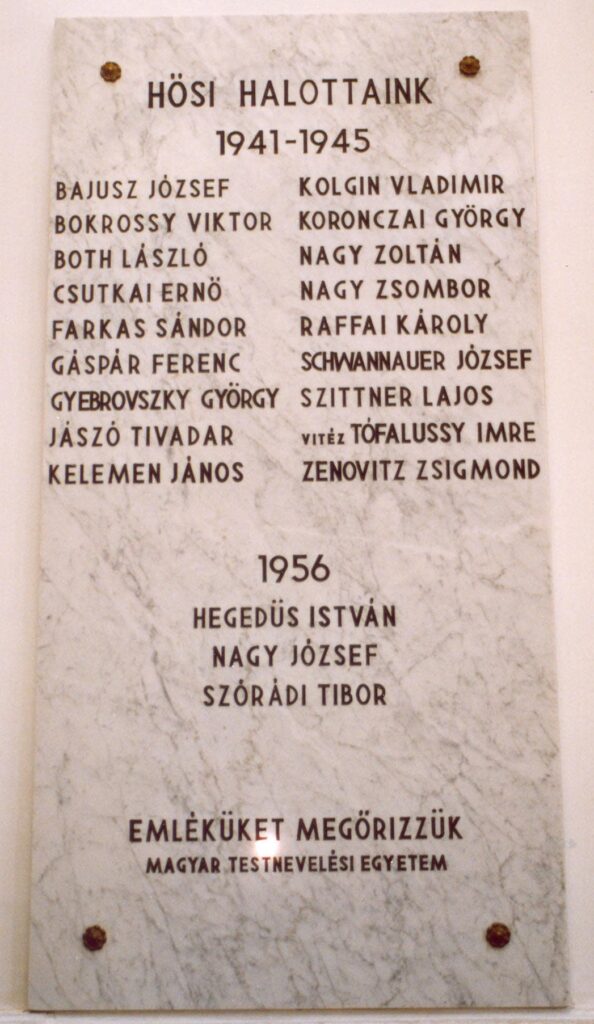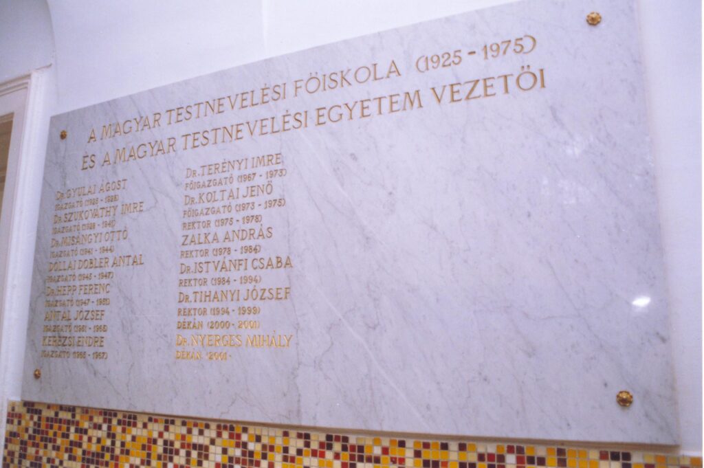 Magyar Testnevelési Főiskola és a Magyar Testnevelési Egyetem vezetői : emléktábla