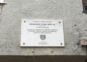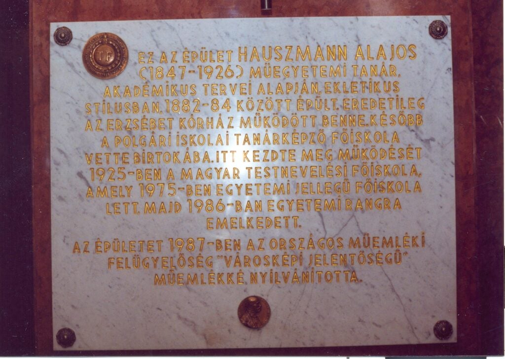 | Alkotás utca 44. A Magyar Testnevelési Egyetem főépületének falán |