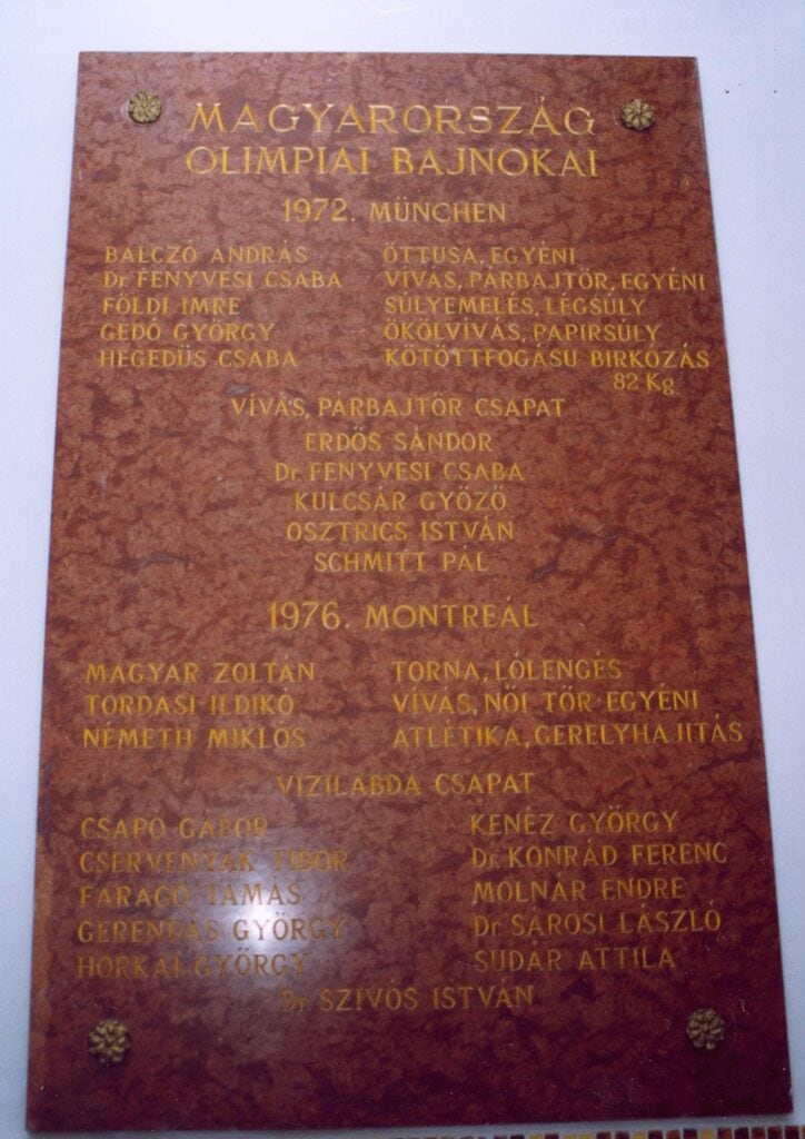 Magyarország olimpiai bajnokai 1972 München : 1976 Montreál : emléktábla