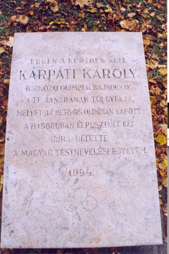 | Alkotás utca 44. Kárpáti Károly bírkózó olimpiai bajnok emlékköve a TF udvarán |