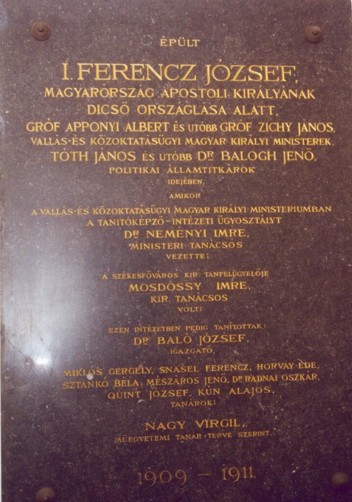 | Városmajor utca 59/a. (Az iskola bejáratában) |