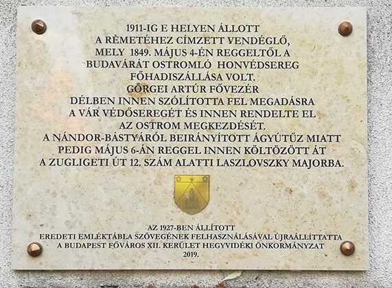 Görgei Artúr emlékére, egykori 1849-es főhadiszállása : emléktábla