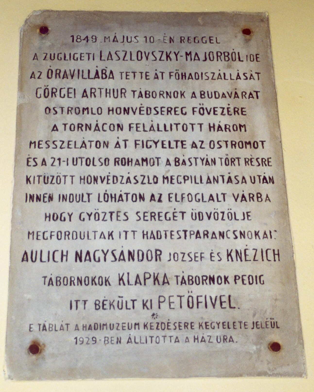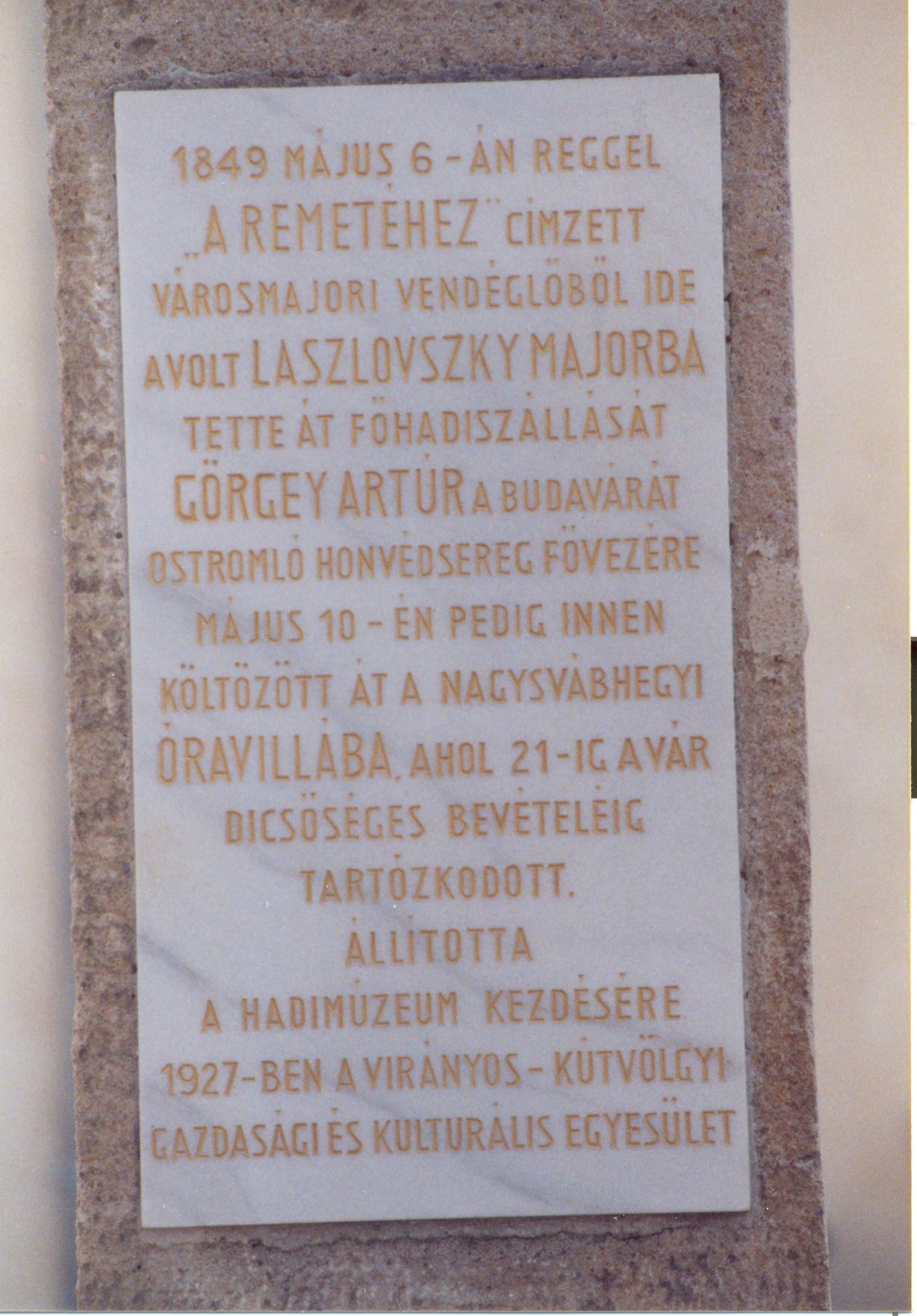 Görgei Artúr emlékére, egykori 1849-es főhadiszállása : emléktábla