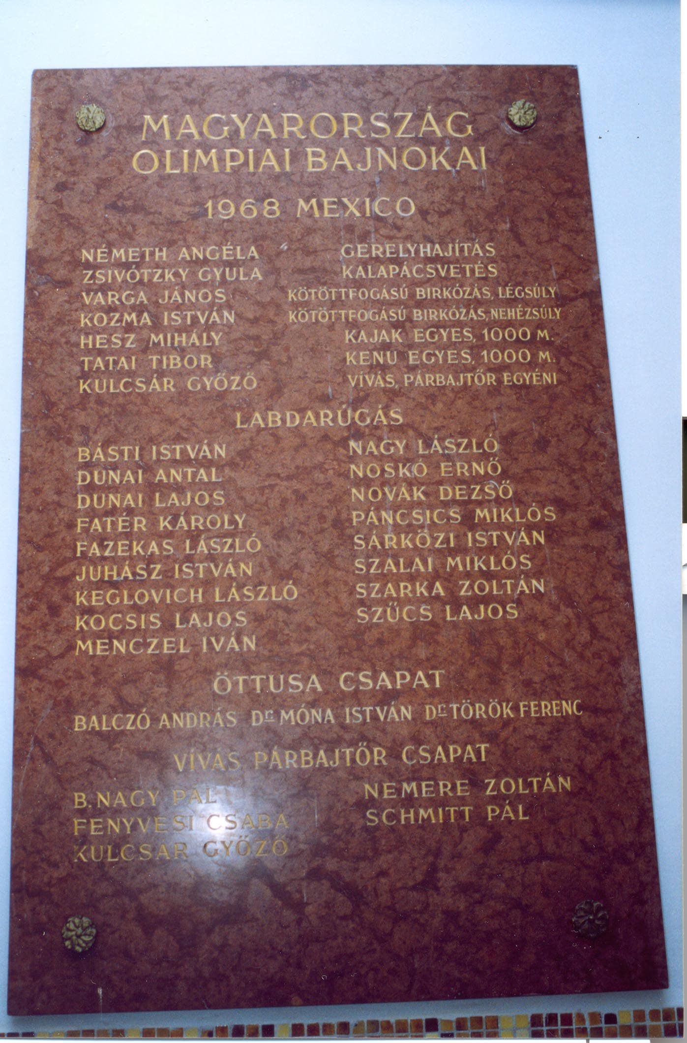 Magyarország olimpiai bajnokai 1968 Mexico : emléktábla
