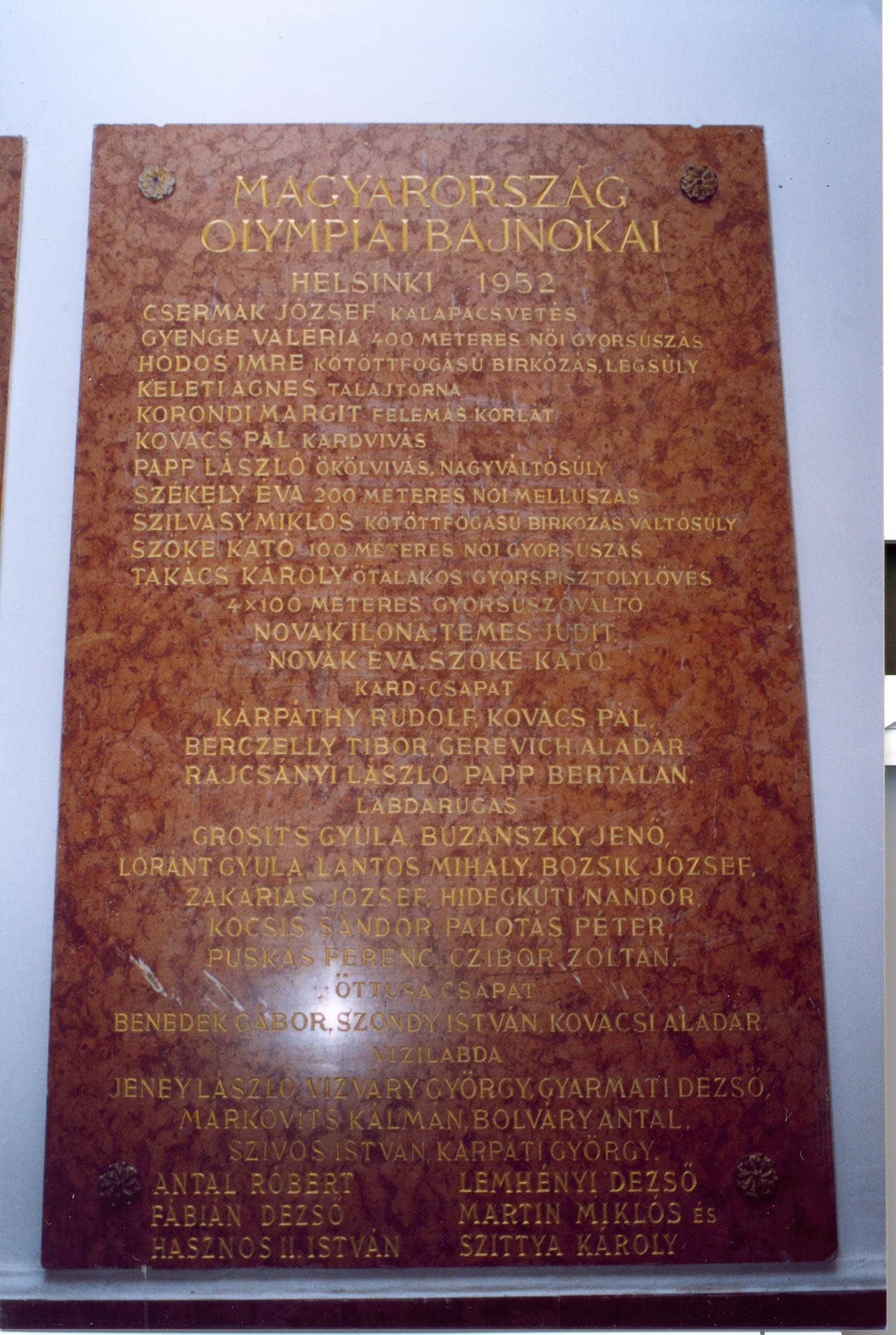 Magyarország olimpiai bajnokai 1952 Helsinki : emléktábla