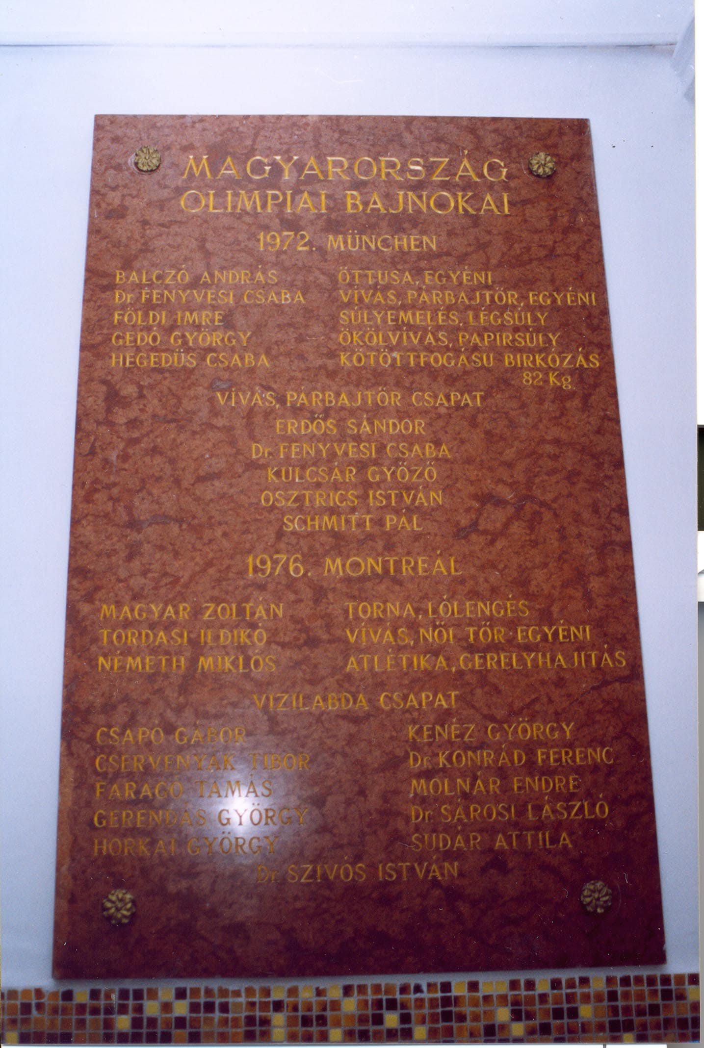 Magyarország olimpiai bajnokai 1972 München : 1976 Montreál : emléktábla