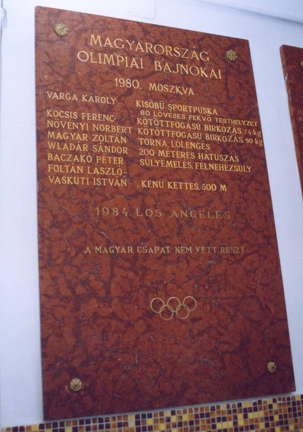 Magyarország olimpiai bajnokai 1980 Moszkva : 1984 Los Angeles : emléktábla