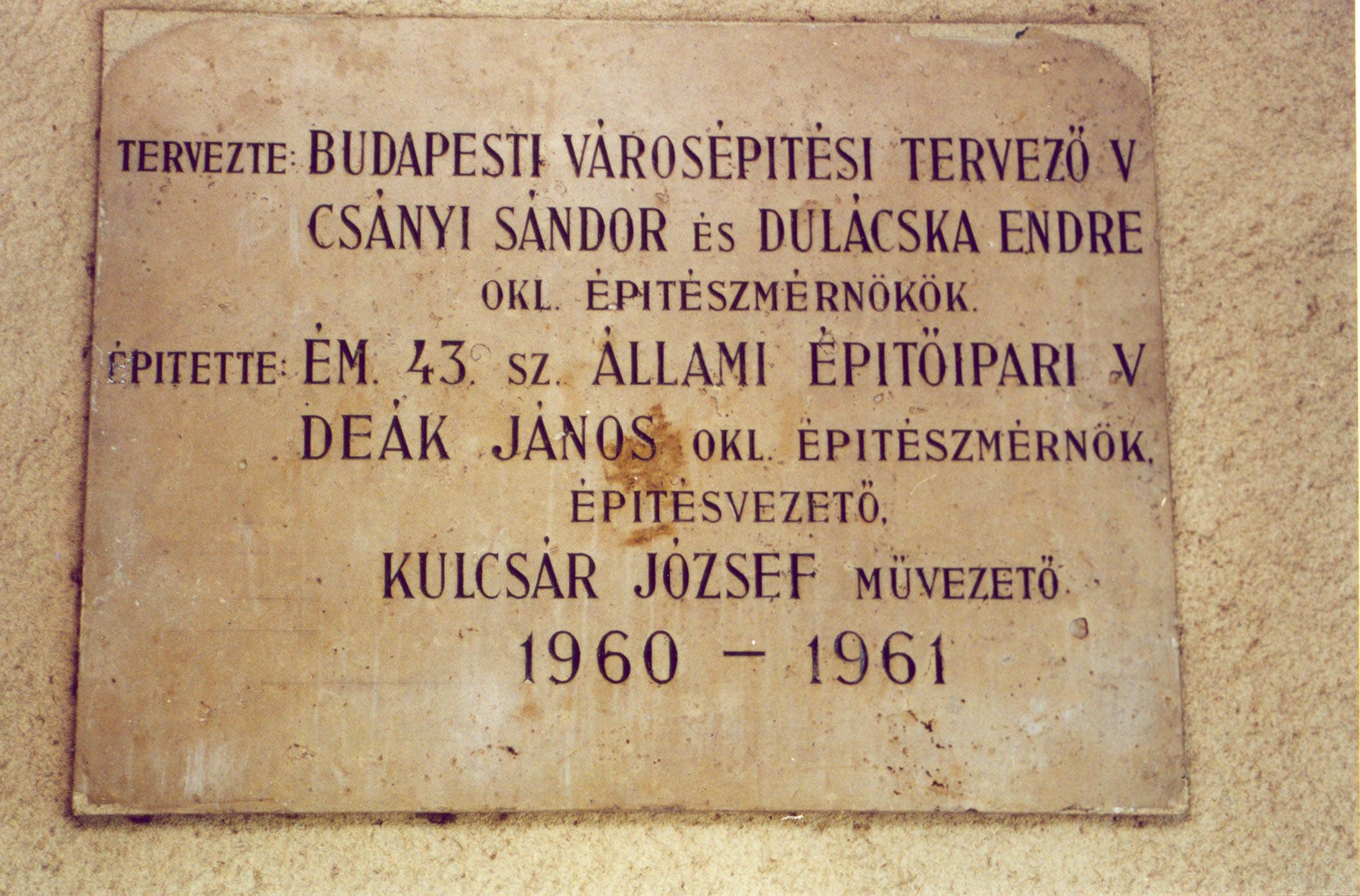 | Böszörményi út 23/25. A főbejárati lépcsőház jobb oldali falán. |