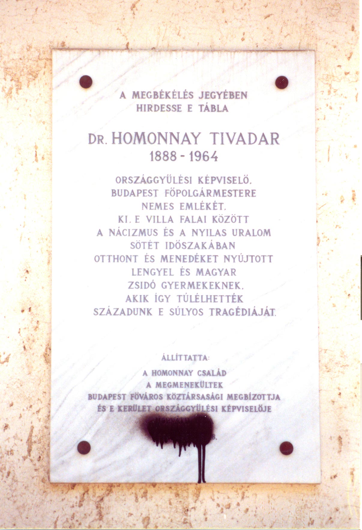| Budakeszi út 48. (Lauder iskola) előtt, a II. világháború során elpusztult eredeti emléktábla helyett |