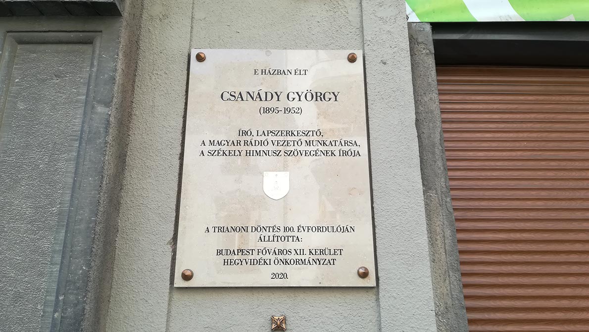 | Tartsay Vilmos utca 20. egykori lakóháza falán. |