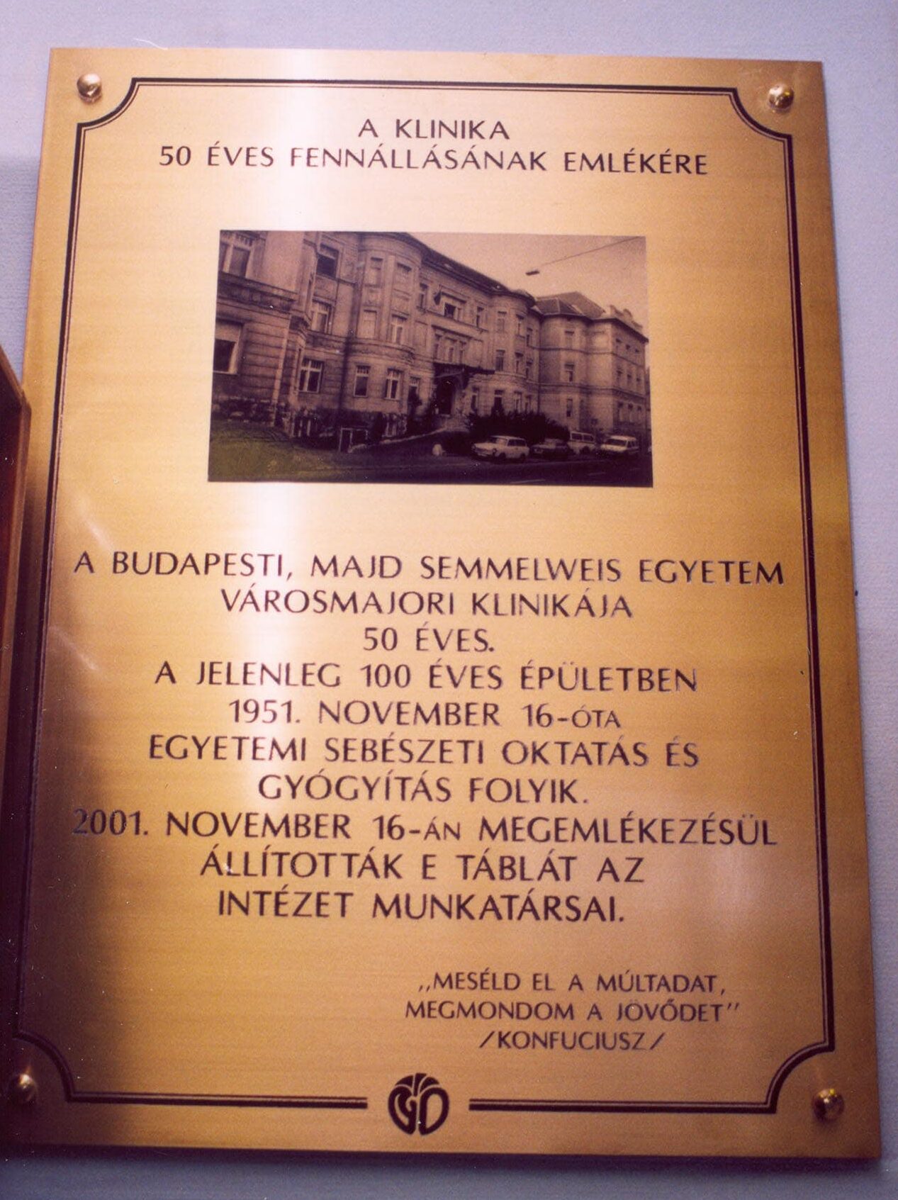 Szív- és Érsebészeti Klinika 50 éves fennállásának emlékére : emléktábla