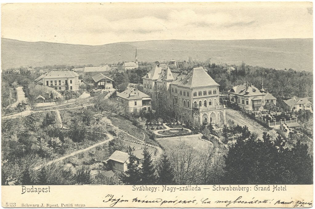„Irjon kérem pár szót, ha megbocsátott!” Olvashatjuk egy 1905. augusztus 30-án feladott képeslapon, amin gyönyörűen látszik a Svábhegy felülről. A Nagyszálló, a templom, a fogaskerekű állomás és még sok más épület.